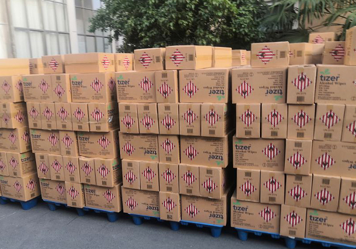 我司生產(chǎn)的75%酒精消毒濕巾,經(jīng)上海港出口至歐美國(guó)家